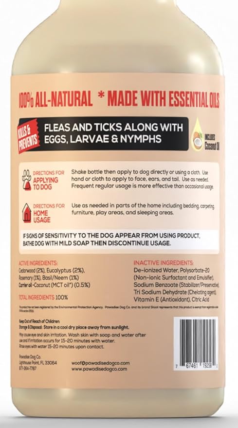 - NATURAL & CHEMICAL-FREE PROTECTION: Made with essential oils like cedarwood, rosemary, and eucalyptus with a touch of coconut oil to enhance the effectiveness, this spray is free from harsh chemicals, making it safe for daily use on your dog and around the home.