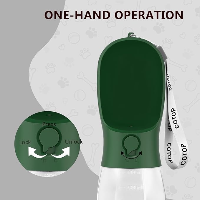 - 【Easy to Use 】 Turn left and depress the lock button, the water in the bottle can flow to bowl or flow back from bowl to bottle slowly. There is no waste of water. All operations can be finished by one hand, very easy to use. ALWAYS REMEMBER to turn right before putting the bottle into your bag, prevent leaking.