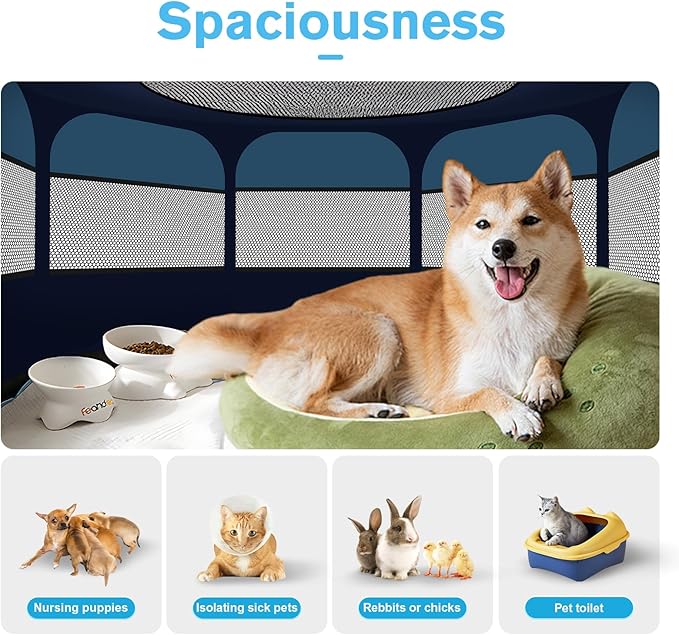 Dog Playpen, Pet Playpen, Portable Cat Playpen, Pop Up Foldable Puppy Playpen Exercise Kennel Tent with Carry Case Collapsible Bowl,Water-Resistant Shade Cover for Indoor Outdoor Travel (Extra Large)