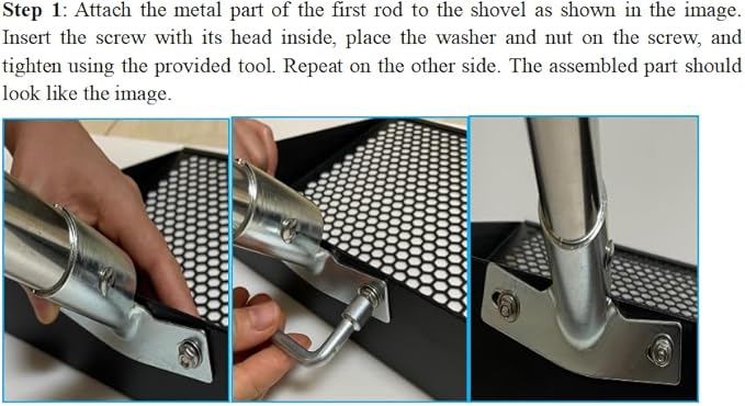 - Friendly Reminder:When installing the screws, make sure the screw heads are placed inside the chicken poop scooper, with the washers and nuts on the outside. Use the included wrench to tighten the nuts as much as possible—this will help prevent the screws from coming loose during use. If the washers are placed inside and only the nuts are on the outside, the nuts may easily come off while using the product.