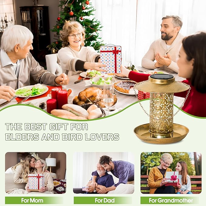 - 【Unique Gift】A Wonderful Garden Present - The solar bird feeder comes in a beautifully designed box. An ideal gift for Mom/Grandma/Wife/Daughter/Sister/Aunt/Grandma, girlfriend/boyfriend, wife's wedding anniversary, child's birthday, mother's birthday, or Mother's Day, Father's Day, Thanksgiving Day, Valentine's Day, and Christmas.