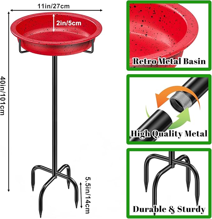 40In Metal Bird Bath for Outside, Freestanding Garden Birdbaths Bowl Bird Feeder, Detachable Decoration Spa Birdfeeder for Outdoor Garden Patio Yard Lawn (Red)