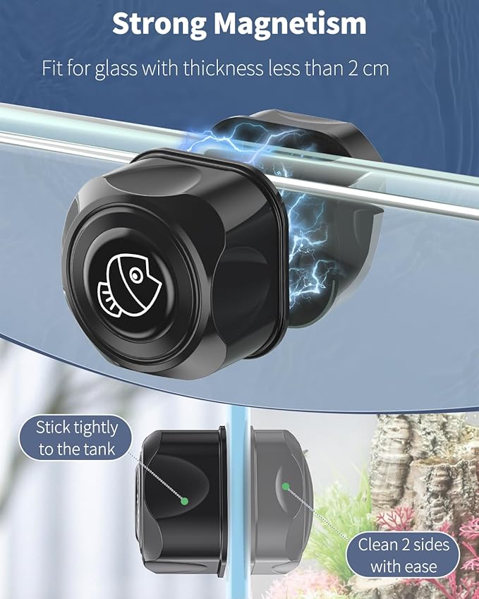 - Strong Magnetism: The fish tank dust cleaner carries strong magnetic force, making the 2 magnet pads stick tightly to the tank without falling off. Always follow each other to clean both sides with ease. Make sure the magnet is clean before scrubbing.