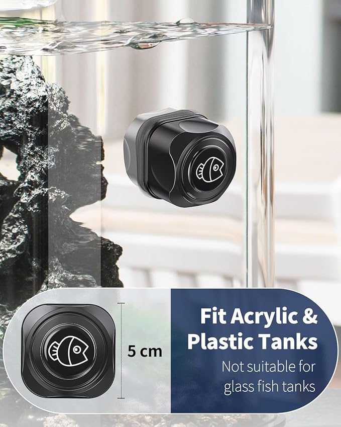 - For Acrylic/Plastic Tanks Only: Mini size: 1.8" D x 2.3" H. Perfect size for fish tanks up to 30 gallons. Work great to clean acrylic and plastic fish tanks with thickness less than 4/5 inches. Not Fit for Glass Tanks!