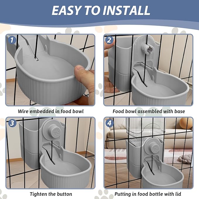 - ๐ฐ [Quality Materials]: Our rabbit food dispenser is made of durable food grade PP plastic, safe and odourless. The capacity of the feeder is 40oz/1200ml, which can meet your pet's food needs for 3-5 days
