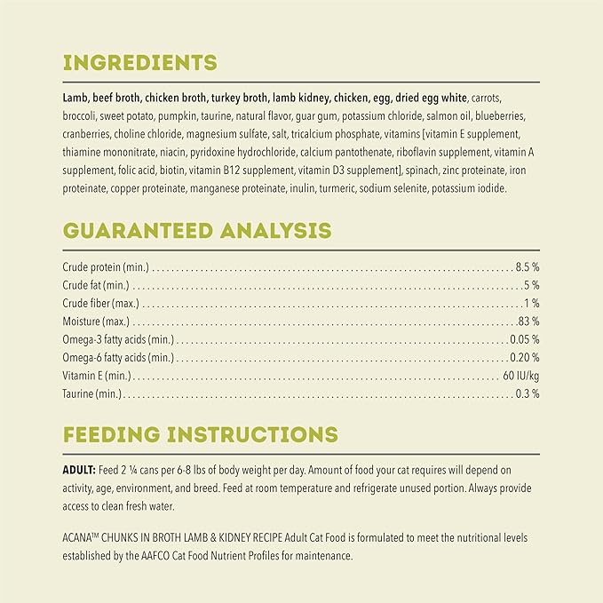 ACANA Chunks in Broth Wet Cat Food Lamb & Kidney Recipe 3oz Cans (12 Count)