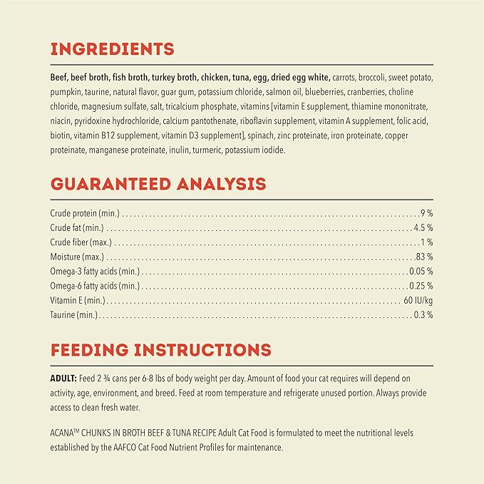 ACANA Chunks in Broth Wet Cat Food Beef & Tuna Recipe 3oz Cans (12 Count)