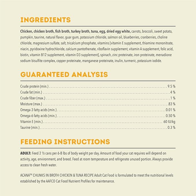 ACANA Chunks in Broth Wet Cat Food Chicken & Tuna Recipe 3oz Cans (12 Count)