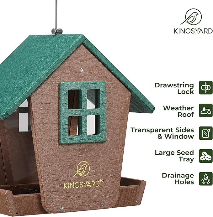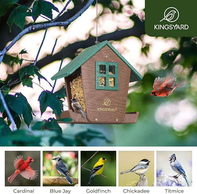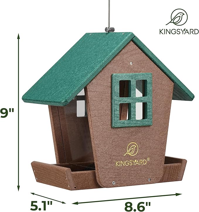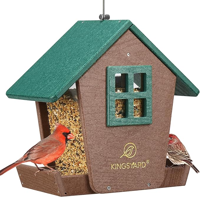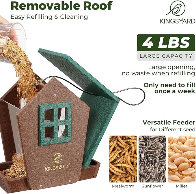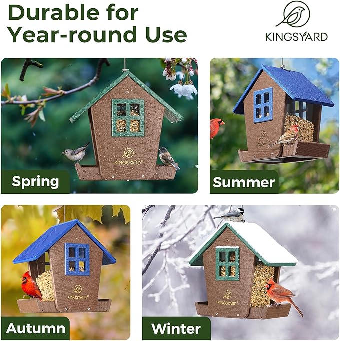 Kingsyard Bird Feeder House for Outdoors Hanging, Recycled Plastic Large Bird Feeder with Weatherproof Roof & Seed Tray for Finch Cardinal Chickadee, Large Capacity 4 lbs, Garden Yard Outside Decor