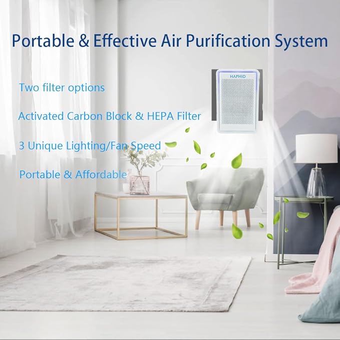 - Triple Purification Technology: Depending on the specific needs,the plug in air purifier offers two filter options: HEPA filter and active carbon filter. Choose one of the two at the time of use.HEPA filter is designed to capture harmful substances in the air. High-efficiency activated carbon block filter can absorb odors from bathrooms, kitchens, pet rooms, basements and more.