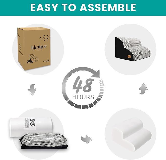 - Notice: Our dog stairs for bed are vacuum compression packed, open the vacuum packing and the high density sponge in the dog steps will fully expand rebound in 24-48 hours, please be patient.