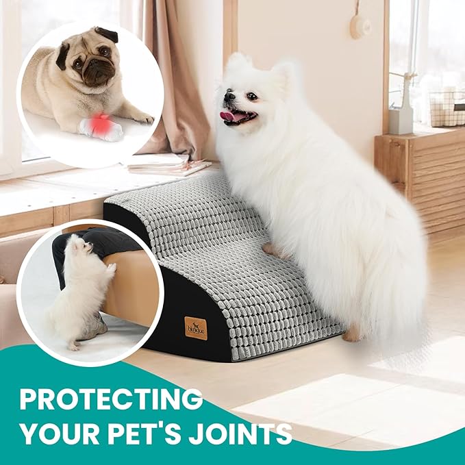 - High Quality Material: 30D high supportive foam with high resilience provides greater support and no deformation. The soft corduroy dog stair cover and non-slip rubber dotted base ensure your furry friend's safety.