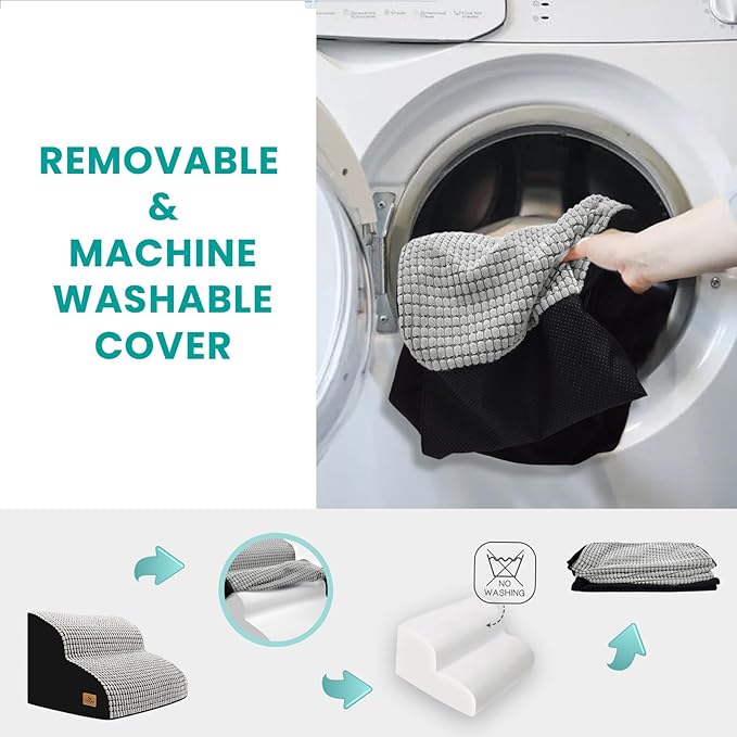 - Easy to Care: Our dog stairs are designed with a zip which makes it easy and convenient to put the cover on and take it off. Machine wash and tumble dry the pet stairs cover to give your pet a comfortable and clean pet steps.
