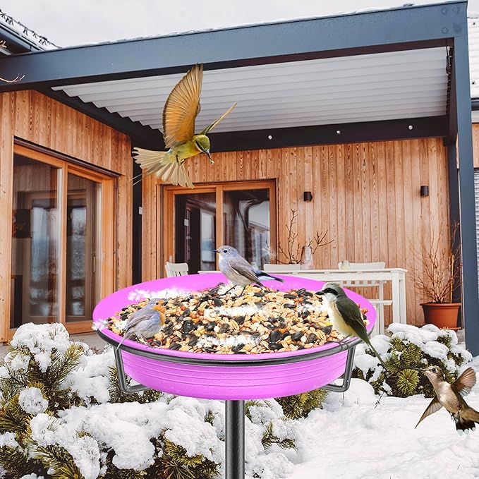 28In Freestanding Birdbaths Bowl Outdoor, Standing Garden Bird Bath Bird Feeder Bowl with Metal Stake, Detachable Decoration Spa Birdfeeder for Garden Patio Yard Lawn, 4 Spiky Feet (Purple)