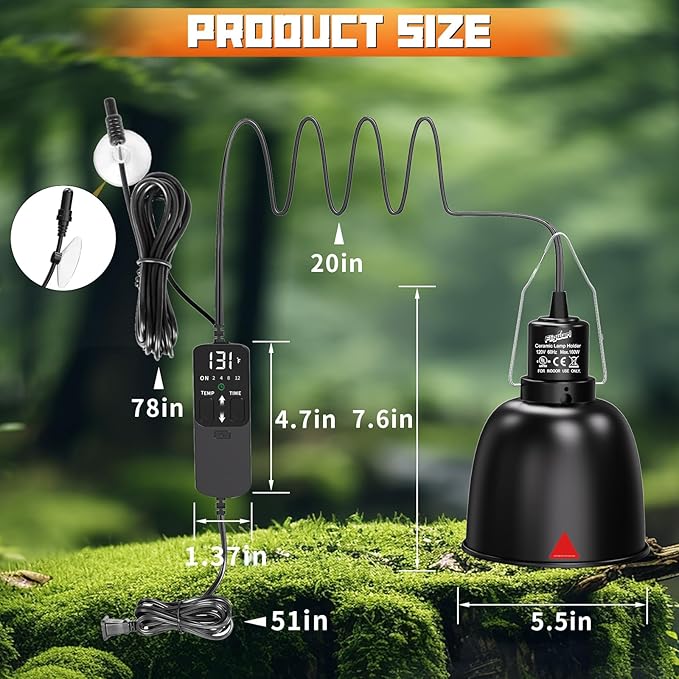 - Special Feature : easy to place, Reptile Light Fixture with Time Thermostat