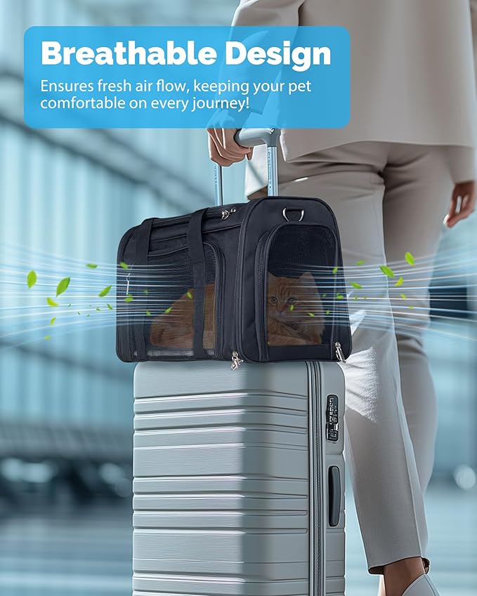 L&W BROS. Airline Approved Cat Carrier - Soft Sided Pet Travel Bag for Cats and Small Dogs Under 16 lbs TSA Approved Pet Carrier in Cabin (Black)