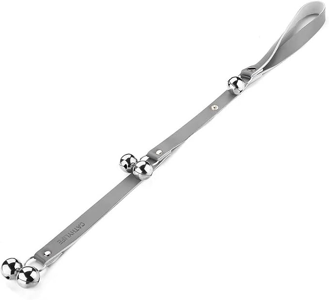 Leather Dog Doorbells for Door Knob/Potty Training/Go Outside, Length Adjustment Copper Dog Bell, Housetraining Hanging Bell, Gray Leather Silver Bells