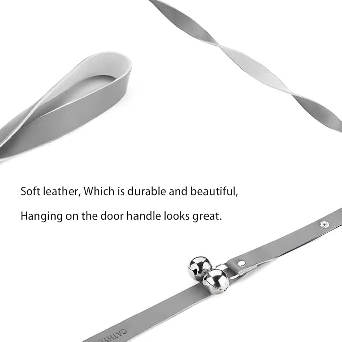 - If you do not want to install a dog door on your own door, this puppy bell will be a good choice, it is easy to use, just hang on the doorknob to start interaction with your puppy. Beautiful leather and bell can also serve as a nice decoration, if hanging the bell on the door handle causes inconvenience, you can buy our hook - B08RY66WD2, stick it in a suitable location to hang the bell.