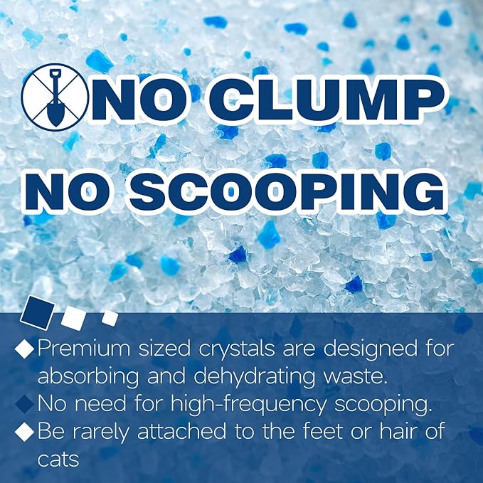 - 🐱Low Tracking & Dust-Free : The crystalline material reduces the dust content in cat litter, and it will not become sticky after absorbing water. Litter crystals will not stick to the cat's feet and be taken out of the litter box, reducing more cleaning chores.