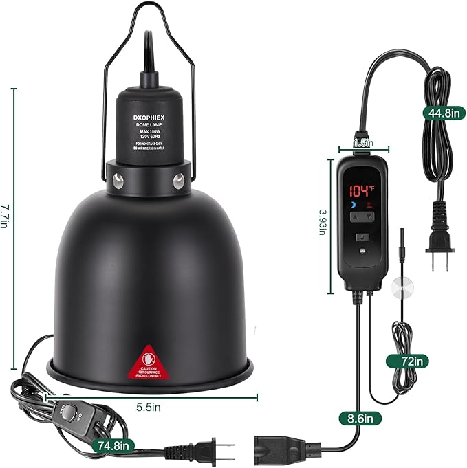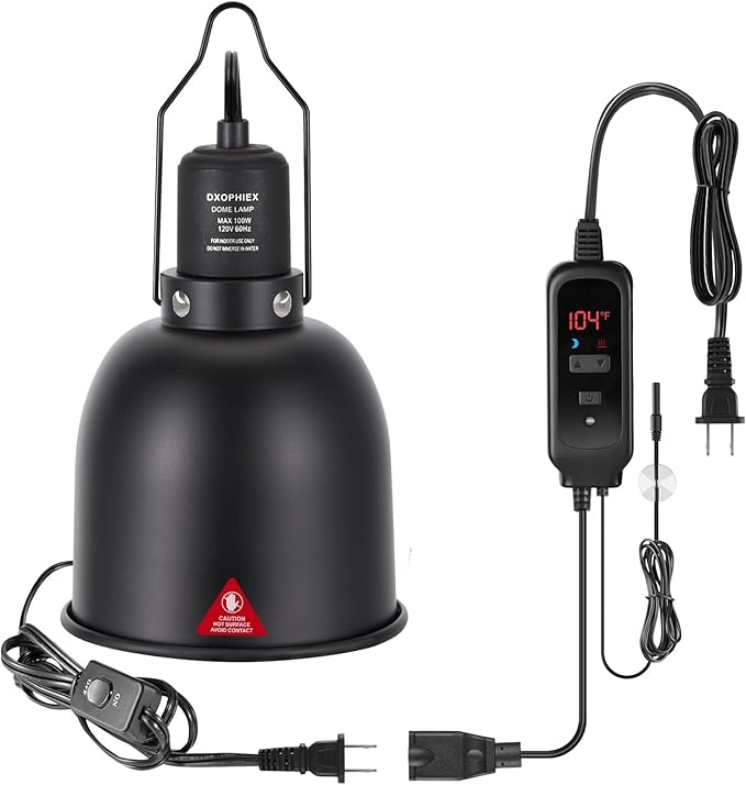 - Easy to Use & Wide Applicability: The reptile heat lamp temperature controller is easy to operate and simple to set up; just place the temperature probe in the desired location inside the reptile terrarium, plug in the power, and set the temperature. This reptile lamp fixture with thermostat set is perfect for bearded dragons, lizards, chicks,turtles, hermit crabs, frogs, snakes, leopard geckos, ball pythons, and other reptiles and amphibians.