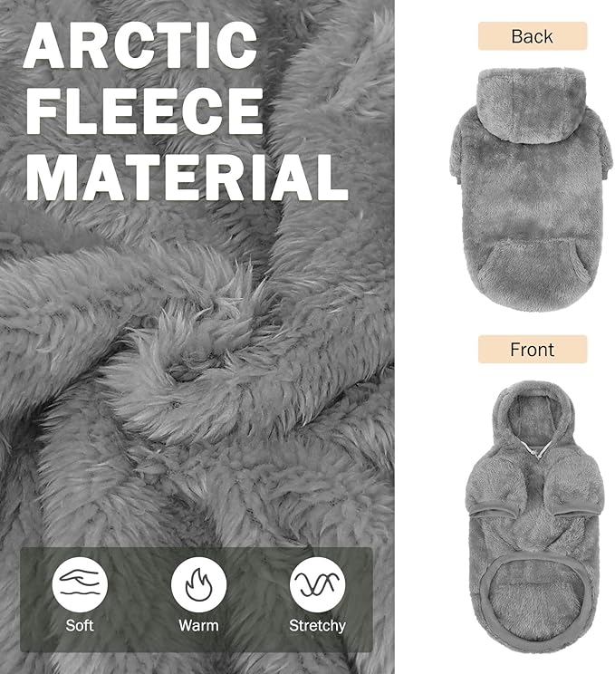 SCENEREAL Fleece Dog Sweater Hoodie for Small Medium Large Dogs, Fuzzy Warm Dog Sweatshirt with Pocket, Girl Boy Dog Clothes for Winter/Fall, Designer Cute Male/Female Dog Clothes with Leash Hole