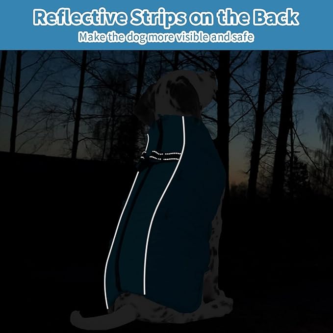 - Easy to Wear: This warm dog coat equips with a smooth zipper on the back for quick and hassle-free dressing, while the self-locking design keeps it securely in place. The dog coats for winter with adjustable drawstrings at the neck and back ensure a snug fit, and hind leg straps prevent the coat from shifting during movement, keeping your dog warm and comfortable all the day.