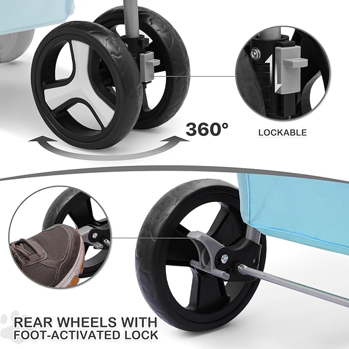 - Sturdy and Safe - Our pet stroller is equipped with breathable mesh windows that allow your furry friend to see and breathe easily. The Oxford cloth material is water-resistant and durable, ensuring your pet's safety and comfort.