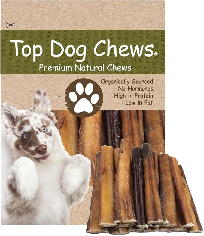 - 12 Pack All 12 Bully Sticks are hand-inspected at our US facility. Top Dog Chews provides your small, medium or large dog with a 100% natural, rawhide free, dog treat that promotes dental health, while providing protein & stimulation to your pet.