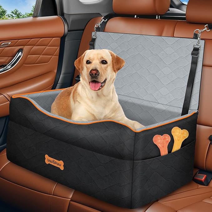 - Security and Comfort: The dog bed for car is made of hard-wearing polyester fiber that is strong and long-lasting. High quality sponge padding provides stable support to the bottom and sides of the dog booster car seat, creating a cosy and comfortable space for your beloved pet. 4.5-inch thick sponge cushion raises the pet car seat, dog car seat allowing most dogs to enjoy the view out the window and relieve travel anxiety.