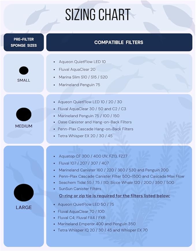 - Includes: 2 pcs of pre-filter sponge (Note: The hole doesn't go all the way through the sponge.)