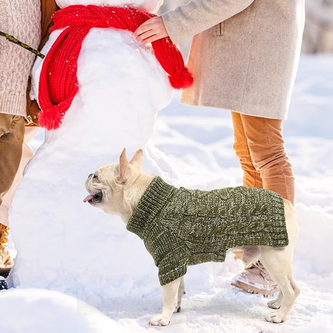 KOOLTAIL Thermal Knitted Dog Sweater for Small Medium Large Dogs, Turtleneck Cable Knit Doggy Winter Coat Warm Clothes Sweatshirt Outfits for Cold Weather, Pullover Pet Jumper for Puppy Cats Green M