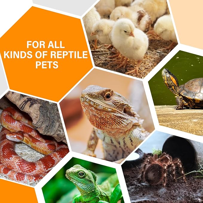- Suitable for Many Animals - Our black reptile heat light bulbs are designed for a variety of reptiles and amphibians, including tortoises, turtles, geckos, snakes, lizards, chameleons, bearded dragons, and poultry such as chickens, birds, chicks, and small mammals. Ideal for maintaining temperature in cold seasons and for use in poultry coops, egg incubation, and warmth.