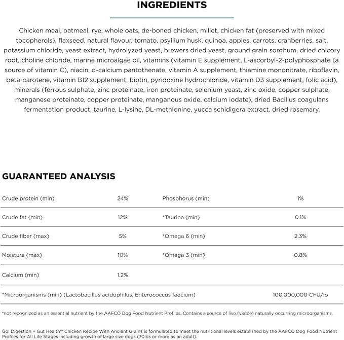 Go! Solutions Digestion + Gut Health, Dry Dog Food, Chicken Recipe with Ancient Grains, 3.5 lb Bag