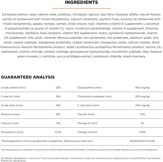 Go! Solutions Weight Management + Joint Care, Grain-Free Dry Dog Food, Salmon Adult and Senior Recipe, 12 lb Bag