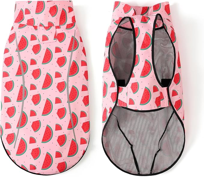 Mile High Life Dog Raincoat, Adjustable Waterproof Reflective Rain Jacket for Small Medium Large Dogs, Lightweight Breathable Pet Rain Coat with Leash Hole(Pink Watermelon,XS Chest 17-23")