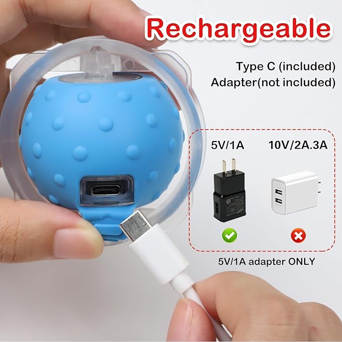 - 【Rechargeble 】 Newest cat ball come with type c cable,easily fully charge within 2-3hrs. ***Choose 5V/1A adapter will more compatiable. Lights RED when charge, turns on GREEN when fully charged, view user guide to get more detail