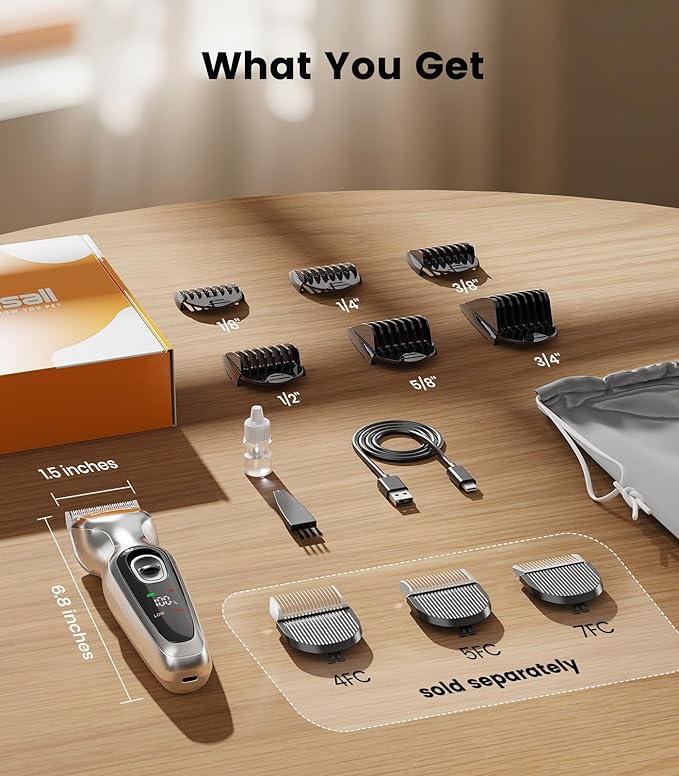 - Detachable Metal Blades: Swap between compatible metal blade sizes (sold separately) to adjust for any fur type. Durable stainless steel stays sharp for precise trims or breed-specific styles. One clipper handles all styles—no extra tools needed