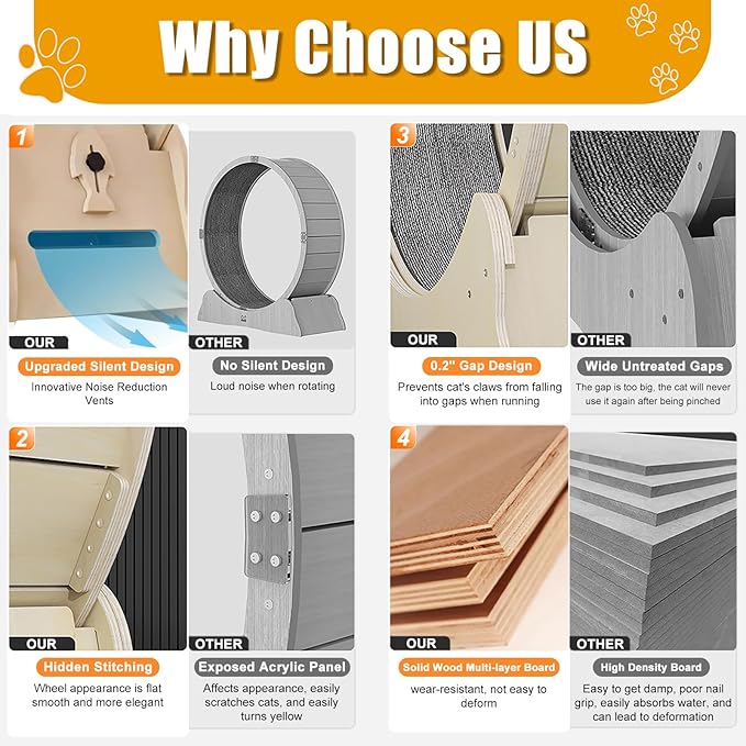 - ✅【Cat Safety Always Comes First】We all know cats are very agile, but once it get hurt on a cat wheel, it'll never run again. So, Our the gap between base and roller is reduced to a minimum less than 6mm to prevent the cat's paws from pinching. Otherwise, it will be just a piece of decor furniture!