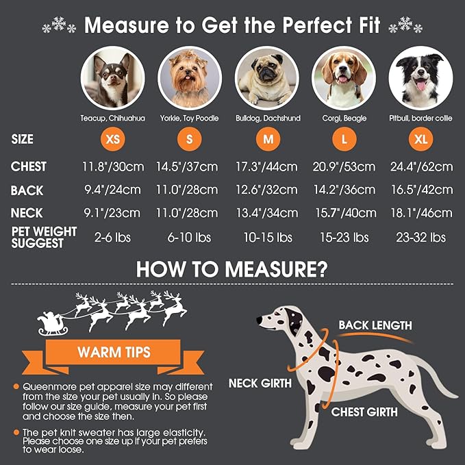 - Cozy Turtleneck Design: Made from high-density acrylic yarn, the Queenmore dog Christmas sweater offers unparalleled softness, warmth, and comfort. Its turtleneck design ensures your pet stays snug and stylish during the winter season.