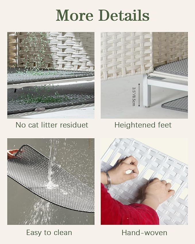 - Quality Build: The hidden litter box is hand-woven from odorless rattan material, hidden cat box is safe for cats to touch. The woven rattan is both waterproof and easier to clean, hidden litter box furniture making your cat and you more comfortable