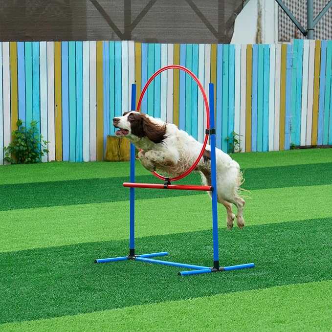 - Upgraed Design for Most Dogs: VEVOR upgraded dog agility course kit suits dogs in different sizes. The height of the dog jump bar is adjustable between 3.9" and 31.5", the diameter of the jump ring is increased to 23.62'' while the length of the tunnel is increased to 118.11". Suitable for small dogs, medium dogs and large dogs!
