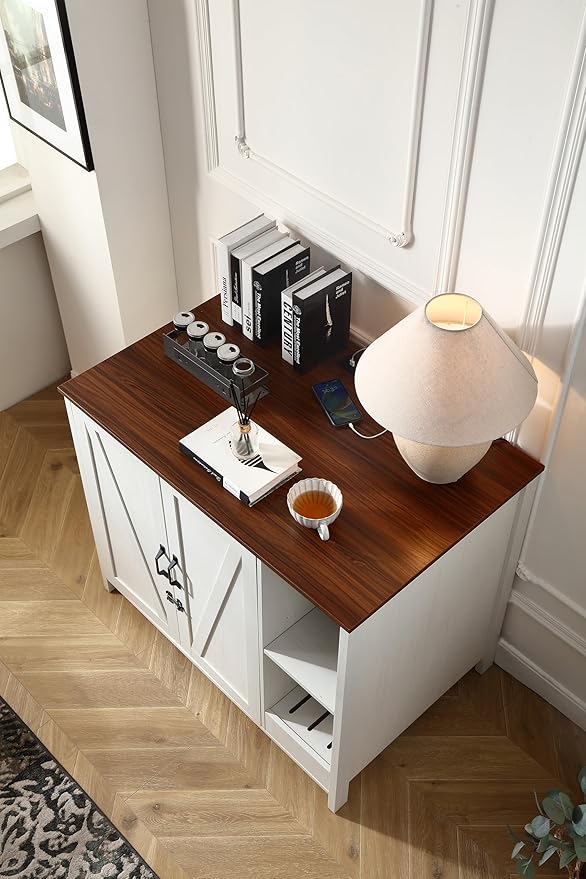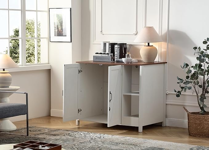 Cat Litter Robot Enclosure,for Placing Litter Robot 3/4,Power Outlet and Dog-Proof Shelf for Litter Robot Cabinet,Litter Collector for Automatic Litter Box Enclosure,Antique White