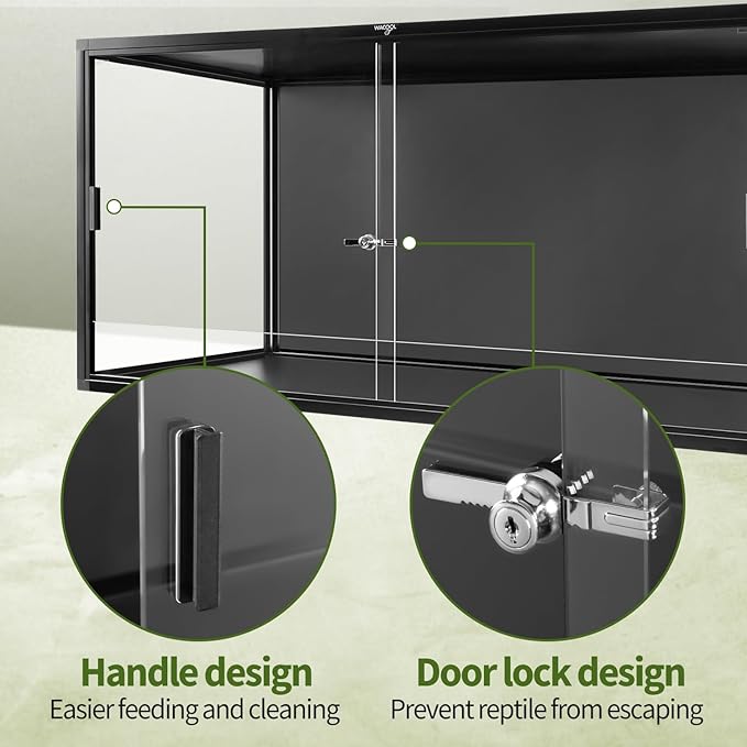 - 【Easy Access and Maintenance】Features front sliding doors with ergonomic handles for quick access, making cleaning and feeding hassle-free. The integrated substrate barrier keeps the substrate in place, maintaining a tidy reptile tank while enhancing convenience for owners.