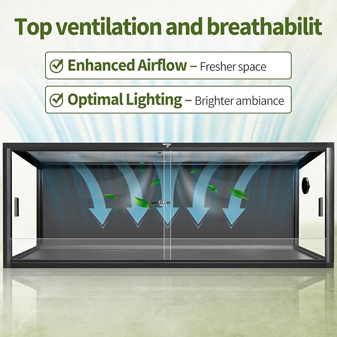 - 【Secure and Escape-Proof Design】The fully enclosed structure with tempered glass doors ensures no gaps for escaping. Rust-proof top screen ventilation offers excellent airflow and optimal lighting penetration for your reptile terrariums. Keep your pets safe and their environment healthy.
