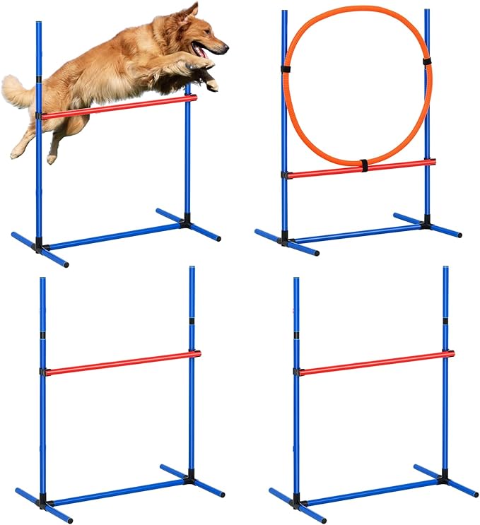 - Enhance Your Dog's Agility: This dog agility equipment set includes 3 jump bars and 1 jump ring. Perfect for training agility and obedience while fostering fun and interactive bonding with your dog.