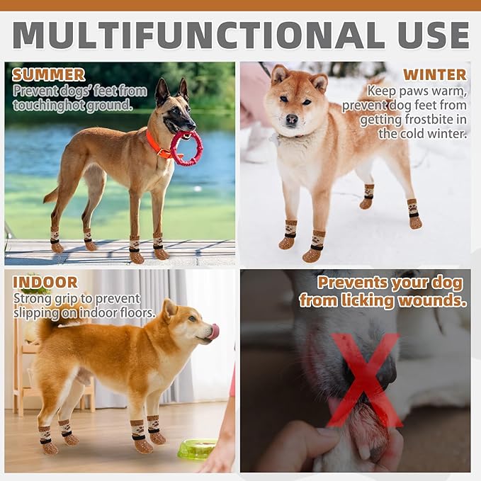 - MULTIFUNCTIONAL: Suitable for small medium large dogs, prevents your dog from licking wounds, from getting burned on the hot pavement in summer, and from getting frostbite in the cold winter. More comfortable than boots, shoes, or paw pads. In addition, it prevents naughty dogs from scratching the sofa and floor. A Practical dog sock Gift!
