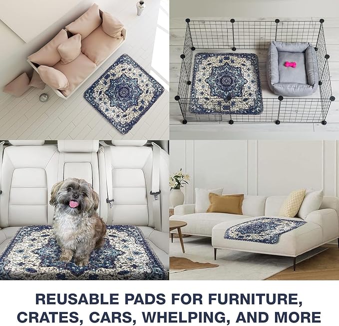 - Multi-Purpose Reusable Dog Pee Pads for Housebreaking, Whelping, and Travel: These large washable pee pads are perfect for multiple uses—puppy house training, whelping pads for dogs giving birth, senior dog incontinence pads, or as protective covers for car seats and pet carriers. Suitable for small, medium, and large breed dogs.