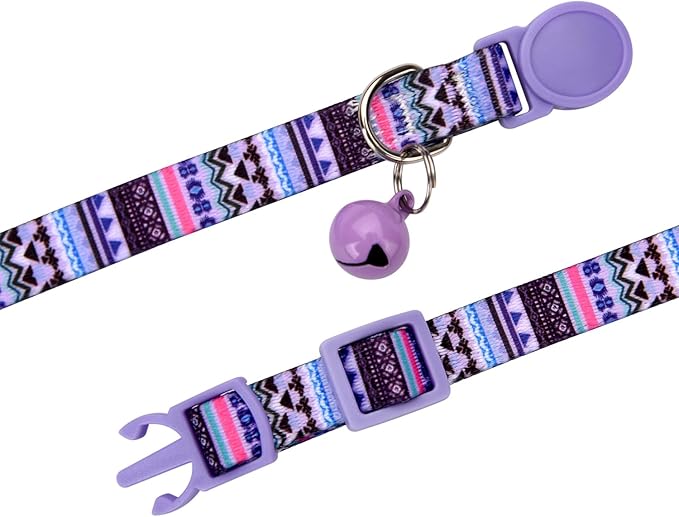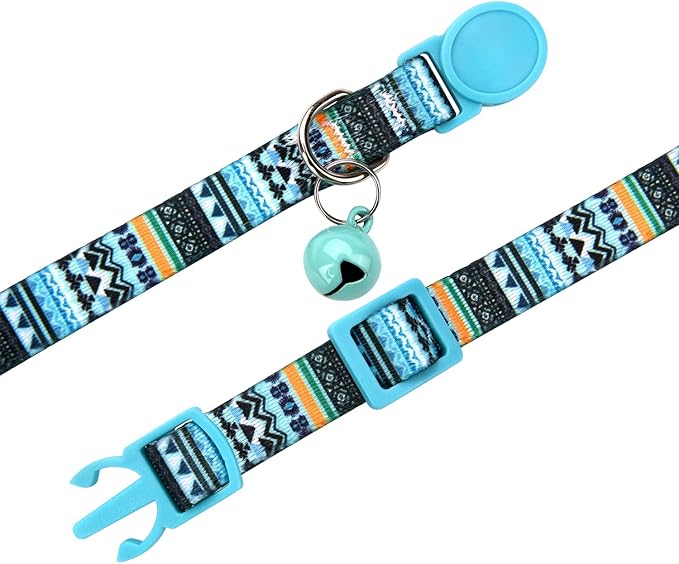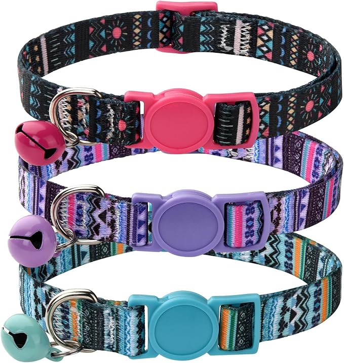 Cat Collar Breakaway with Bells, 3 Pack Girl Boy Pet Cat Collar with Bohemia Floral Tribal Geometric Patterns, Adjustable 7.5-12 Inch, with Safety Buckle for Kitten Cat(Set B)