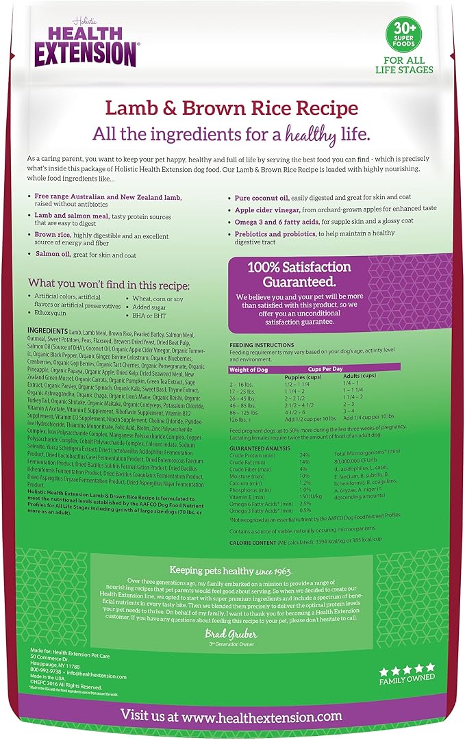 Health Extension Lamb & Brown Rice Dry Dog Food (4 lb / 1.81 kg) - Nutritious Free-Range Lamb Formula with Probiotics, Antioxidants & Omega 3 for Dogs with Sensitive Digestion (Pack of 2)