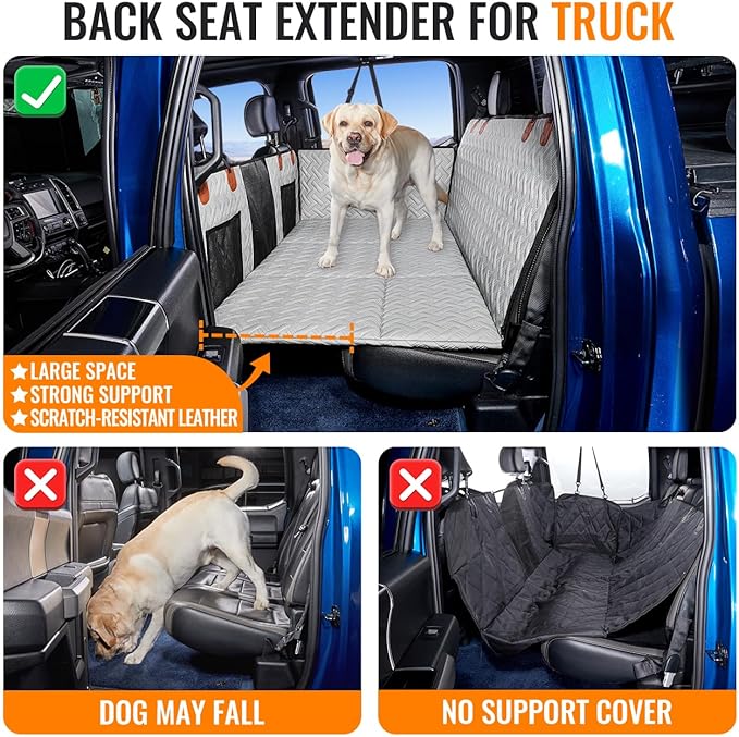Dog Back Seat Extender for Truck,Dog Seat Cover Back Seat,Dogs Hammock,Hard Bottom Backseat Extender for Pet,Pet Seat Cover for F150/RAM1500/Silverado